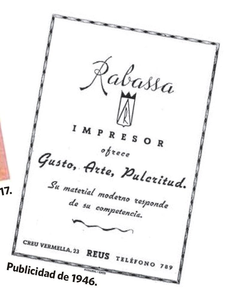 Fundada el 1910, la reusenca Arts Gràfiques Rabassa és una de les impremtes més antigues de les comarques de Tarragona.