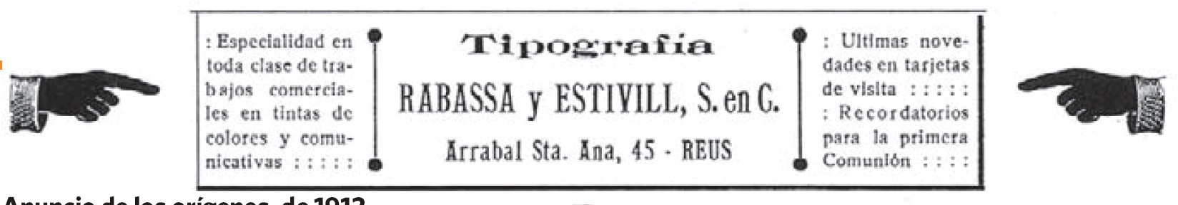 L’empresa va iniciar la seva activitat el 1910 en ple centre de Reus, al número 45 del raval Santa Anna. El seu impulsor va ser Artur Rabassa Barbenys, besavi de l’actual generació, en mans de Maite Rabassa i el seu marit Jordi Batet. I segons recorden els seus hereus, el cuquet per l’ofici d’impressor hauria començat amb el repartiment de diaris per part del primer Rabassa. Sigui com sigui el cert és que els inicis no van ser en solitari. La firma va néixer com Rabassa i Estivill que poc després passaria a denominar Rabassa i Cia per esdevenir Rabassa pocs anys més tard.