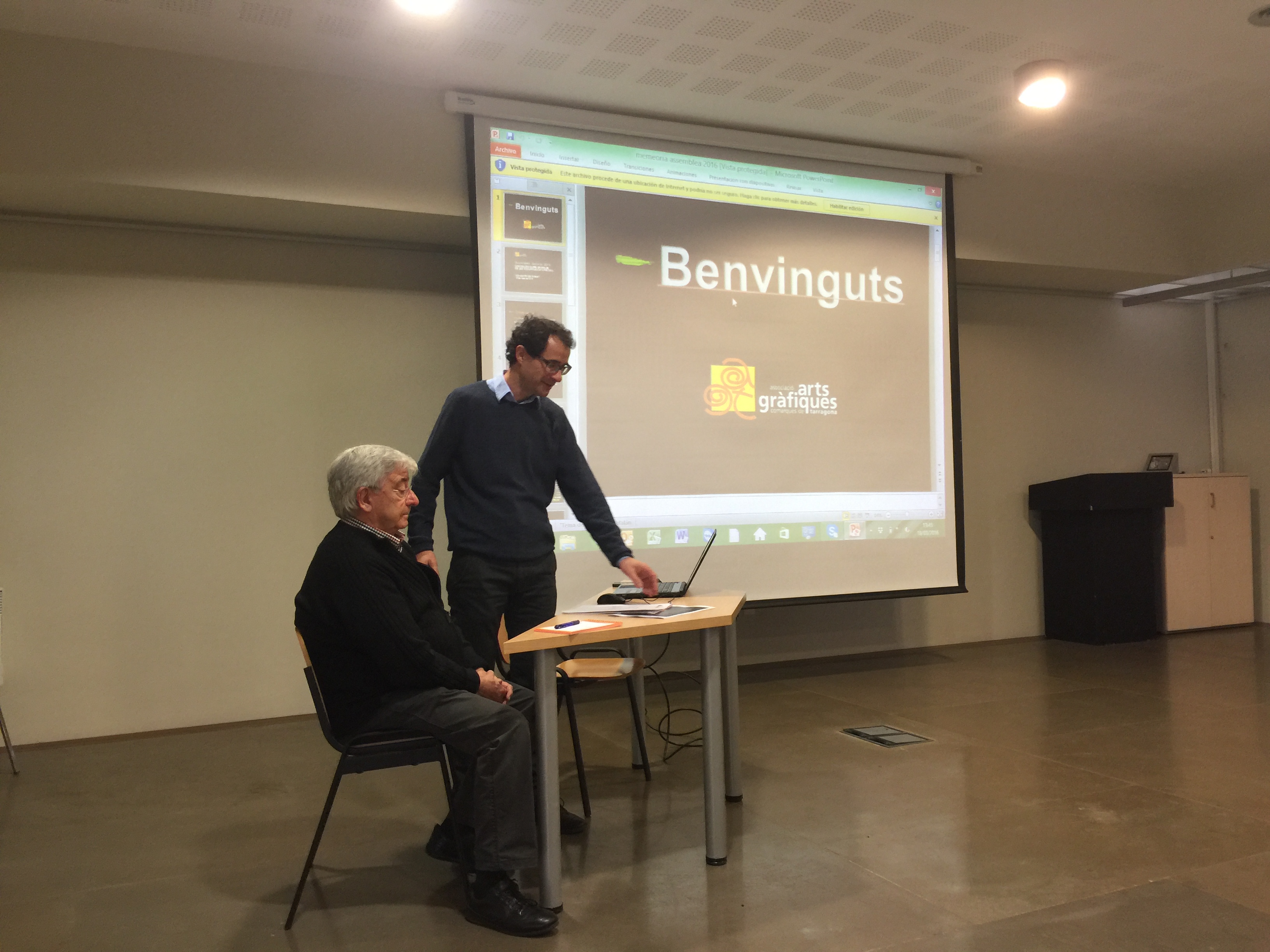 El dijous 3 de març, amb la coordinació dels professors de l’EADT, vam fer una xerrada a un grup dels estudiants de disseny gràfic i d’il·lustració, dels aspectes professionals i tècnics per a les produccions gràfiques que els alumnes de l’escola requeriran en breu.